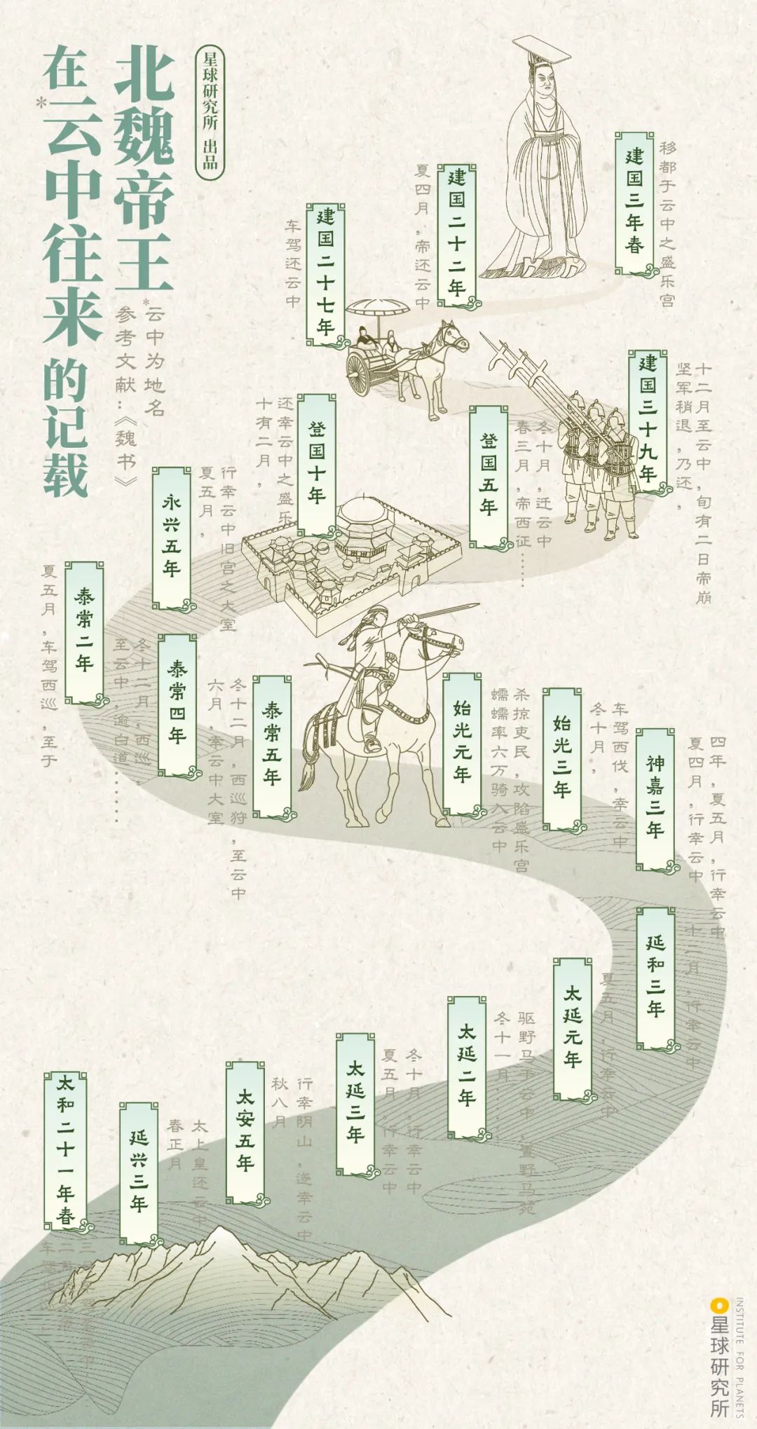 (北魏帝王在云中往来的记载,制图@张琪月/星球研究所)