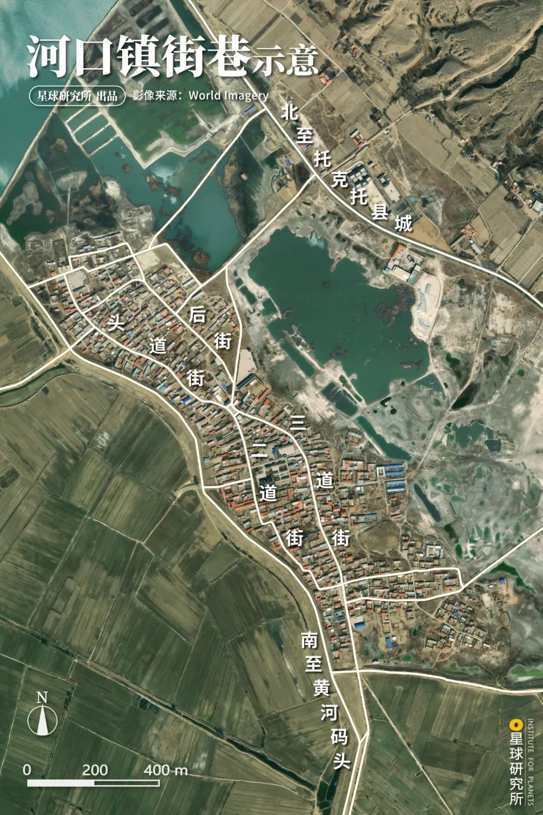 (请横屏观看,黄河与河口镇的关系,以及村落、建筑,摄影师@周昫光/星球研究所,制图@张琪月/星球研究所)