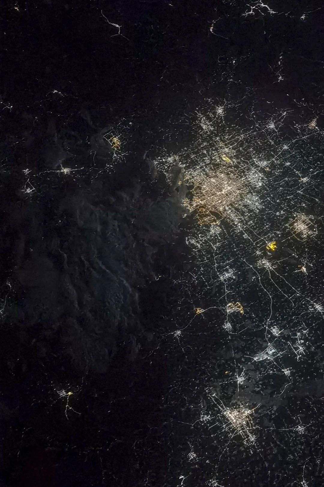 (8月24日21时29分,核心舱组合体划过北京上空时,航天员聂海胜拍下这张北京夜景,摄影师@聂海胜)