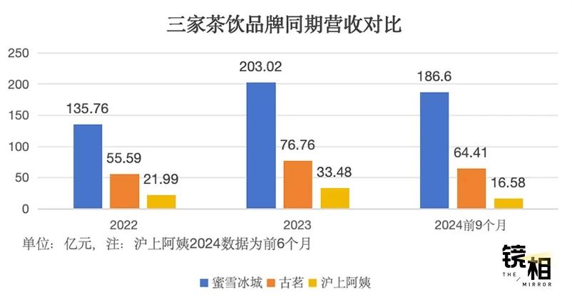 看起来也是做下沉市场的生意,但对比蜜雪冰城和古茗,沪上阿姨的位置和营收都稍显尴尬。在一线城市,沪上阿姨需要和更高端的喜茶、奈雪竞争,在下沉市场,价格上也不如蜜雪冰城有竞争力。