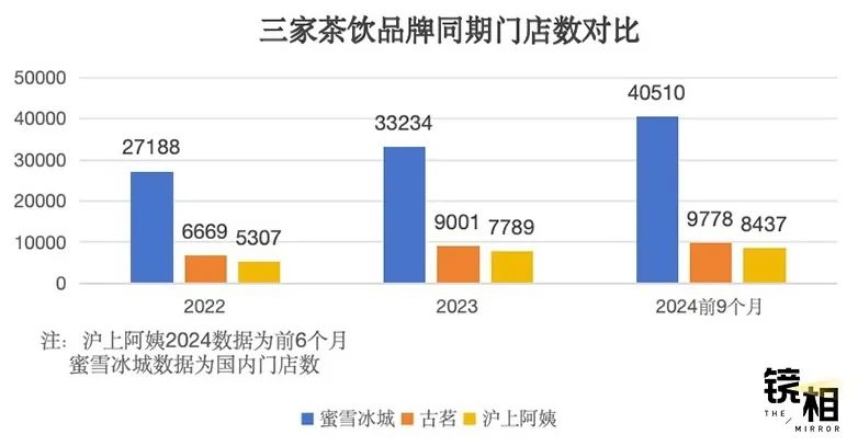以门店规模和综合表现来看,竞争格局已经十分清晰:蜜雪冰城是当之无愧的第一,全球门店超4.5万家,其次是古茗、茶百道、沪上阿姨,都差万店临门一脚。