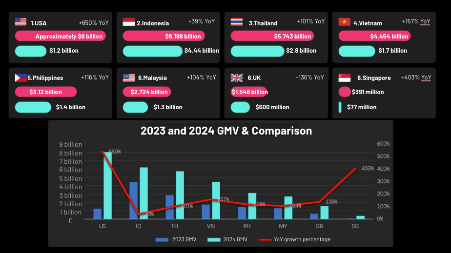 根据视频电商数据分析公司Tabcut.com的统计,TikTok Shop全球GMV达到了约326亿美元。其中,美国成为TikTok Shop最大的市场,GMV达到约90亿美元;印度尼西亚是第二大市场,紧随其后的是泰国。
