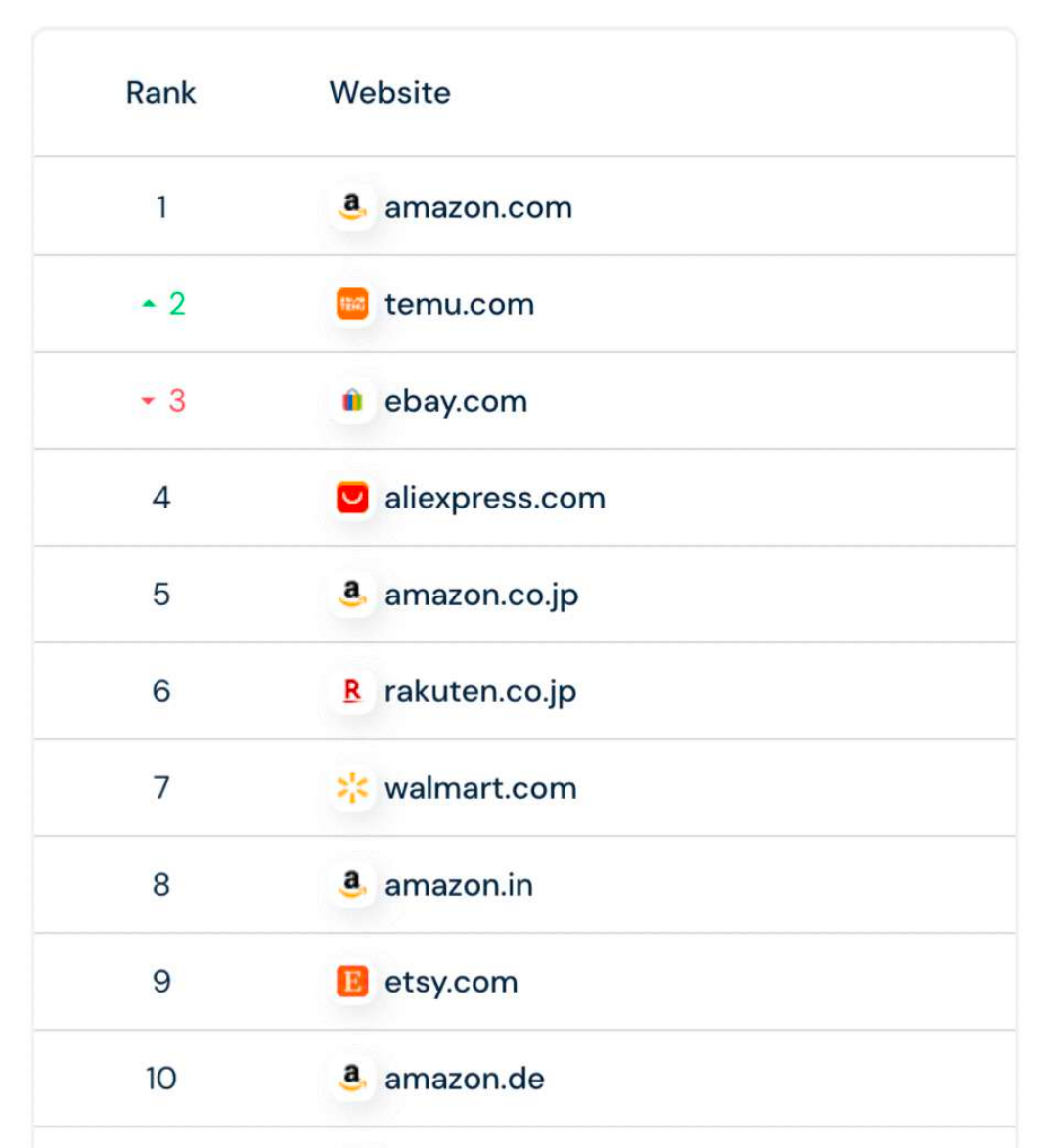 有数据进一步印证了这一趋势。2024年,Temu下载量环比增长69%,全球累计下载量近9亿次,登上了40多个国家移动应用下载总榜的首位,在全球电商应用下载榜以及增长榜上都荣获冠军。目前,Temu已经超越eBay成为全球访问量第二大的电商网站。