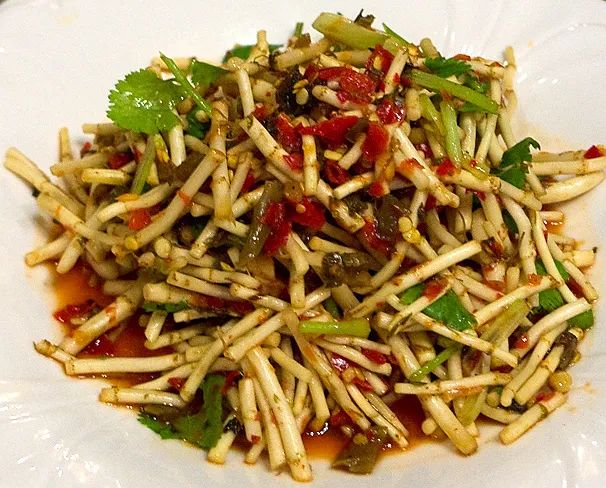 魏晋时期对于折耳根的记载非常多,所涉及的范围也非常广。《齐民要术》里就有“蕺葅法”的记载,这说明当时黄河中下游一带的某些地方仍然食用折耳根。而在西晋《风土记》中,已经有了“蜀人所谓蒩香也”,说明四川人对于折耳根的喜爱从那时候就开始了。在当时出现了生食、酿制酱菜、制作饮料等多种吃法,也已经和今天差不多了。