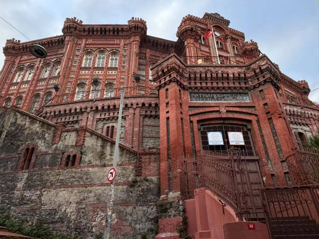 越往高处走,一幢雄伟的红色东正教建筑逐渐袒露全貌——创建于1454年的费内尔希腊学院(Fener Rum Erkek Lisesi),是伊斯坦布尔最古老且最负盛名的希腊学校之一。这幢始建于1880年的古老建筑现今作为中学使用,墙内传来学生运动、嬉戏的声音,它的存在也侧面映照了这片古老街区乃至整座城市文化多元的一面。