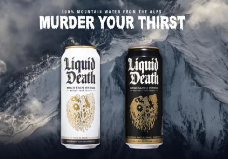 Liquid Death从朋克摇滚和重金属文化中汲取灵感(也有人把Liquid Death的风格称作是straight-edge punks),同时参考了世界各地啤酒的包装和字体,设计了Liquid Death的包装,slogan设计为“Murder Your Thirst 谋杀你的口渴”。