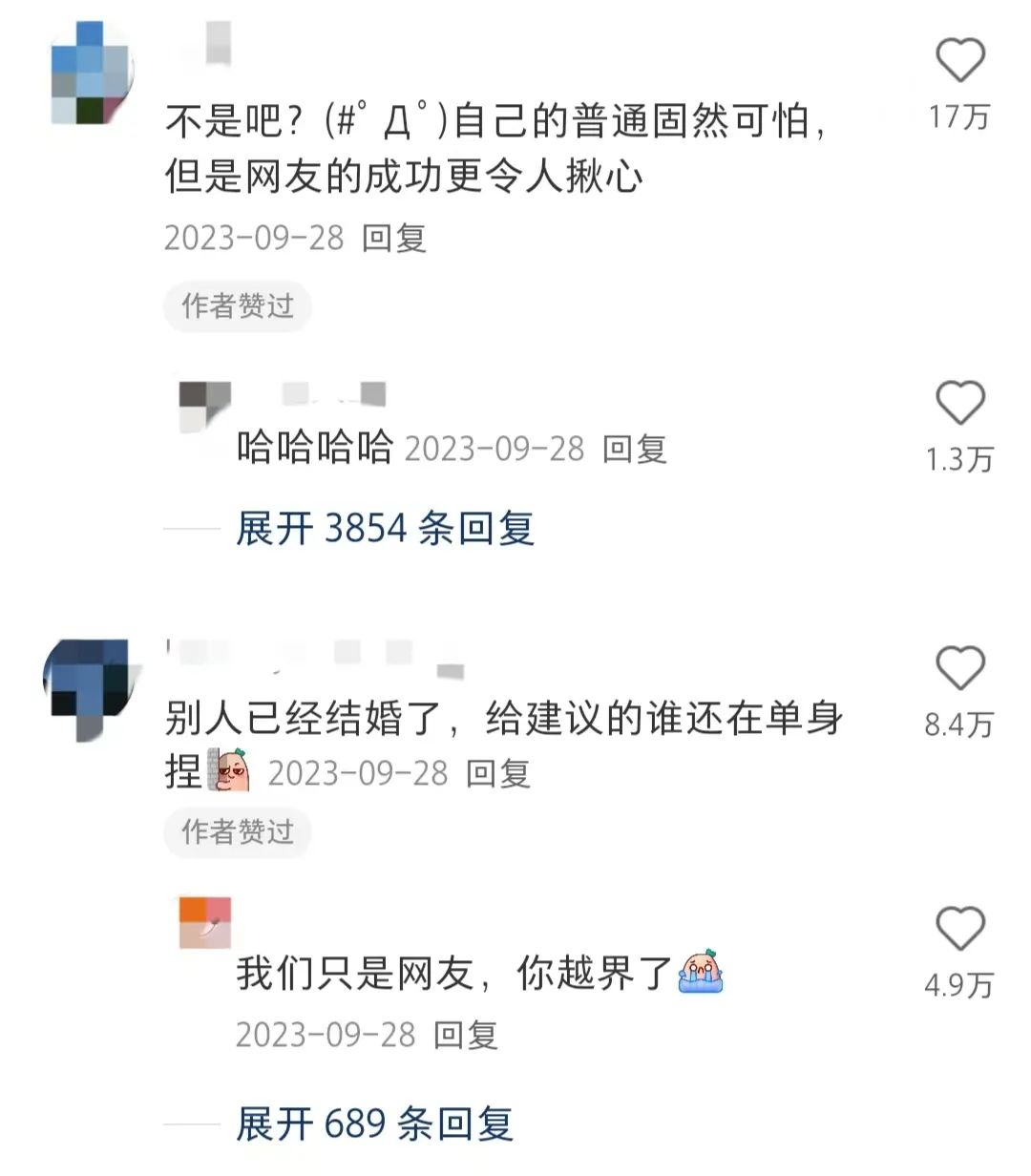 三年时间过去,@小艾同学从一位普通网友变身三十万粉丝的博主,还顺利买房、结婚、有了孩子。不少网友在送出感叹和祝福的同时,也不忘调侃一句,“网友的失败固然令人难过,但网友的成功更是令人心寒。”