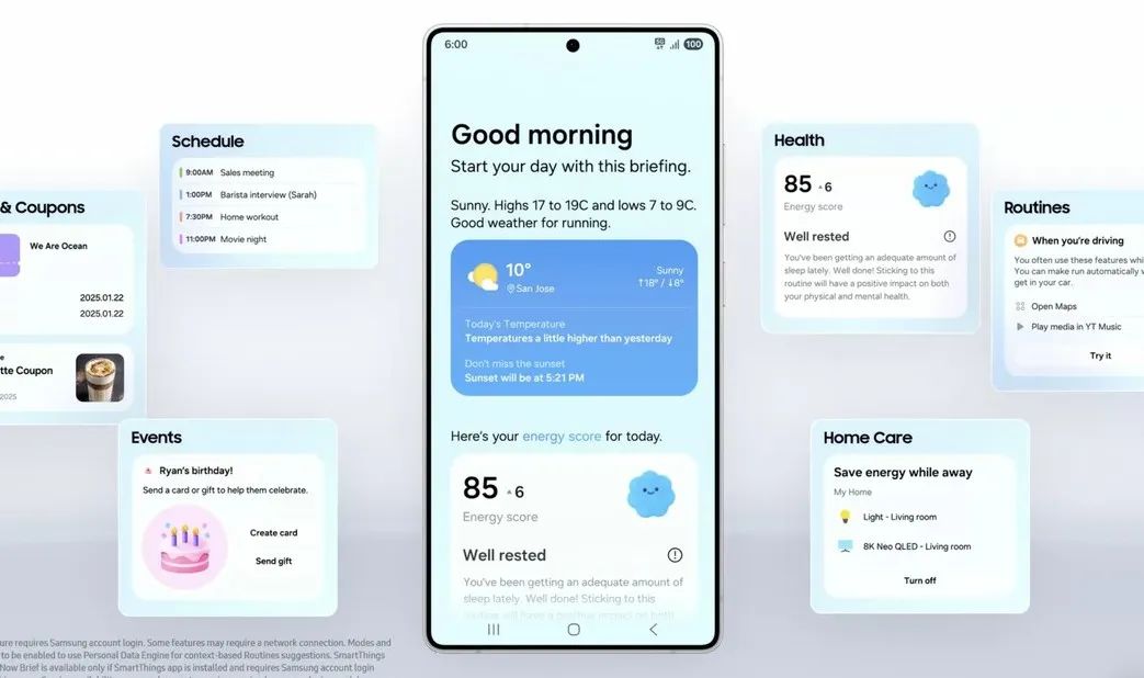 基于端侧学习的能力,Galaxy AI可以深入理解用户的日常习惯。