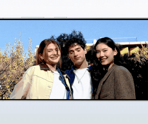 这个功能可以帮助你避免合照时的尴尬瞬间,AI会在同一位置的多张合照中,挑选出每个人的表情最合适的瞬间,并自然地合成在一张照片上,以防止按快门的瞬间,有参与合影的人闭上了眼睛或者不合时宜地翻了白眼。