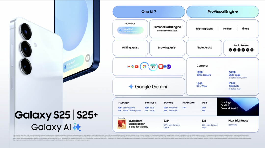 Galaxy S25+售价999美元起,国行尝鲜价7499元起