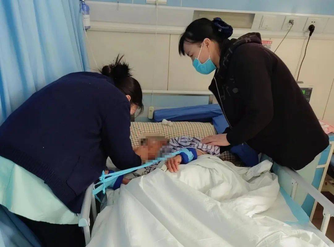 医院护工为患者清洁嘴部。本文供图/江苏省东海县人民医院