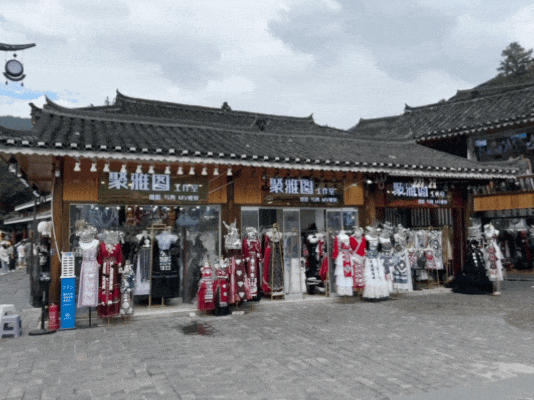 老俞的汉服馆在2022年开业,而周围的旅拍店,也几乎都是疫情后慢慢开起来的。“我本来就是学服装设计的,对汉服文化很感兴趣。当时觉得旅拍店的前景很可观,感觉疫情后,大家都开始旅游,有拍照需求的人也越来越多。”老俞说。但他没想到的是,和自己有相同想法的人太多了。
