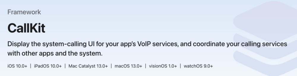 LiveCommunicationKit 是苹果在 iOS 17.4 推出的一个新框架,它和 CallKit 类似,也可以让第三方 App 实现系统级通话。