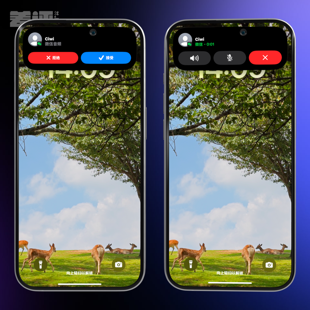 比如微信接入 CallKit 后,别人给你打语音电话,你可以像接系统电话一样,无需打开微信,直接接听。