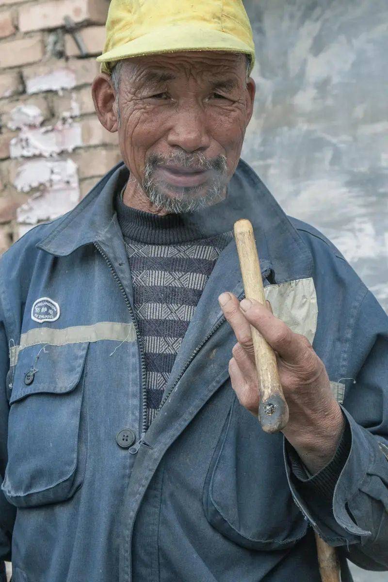 一位放羊的老人,抽着传统的烟筒。