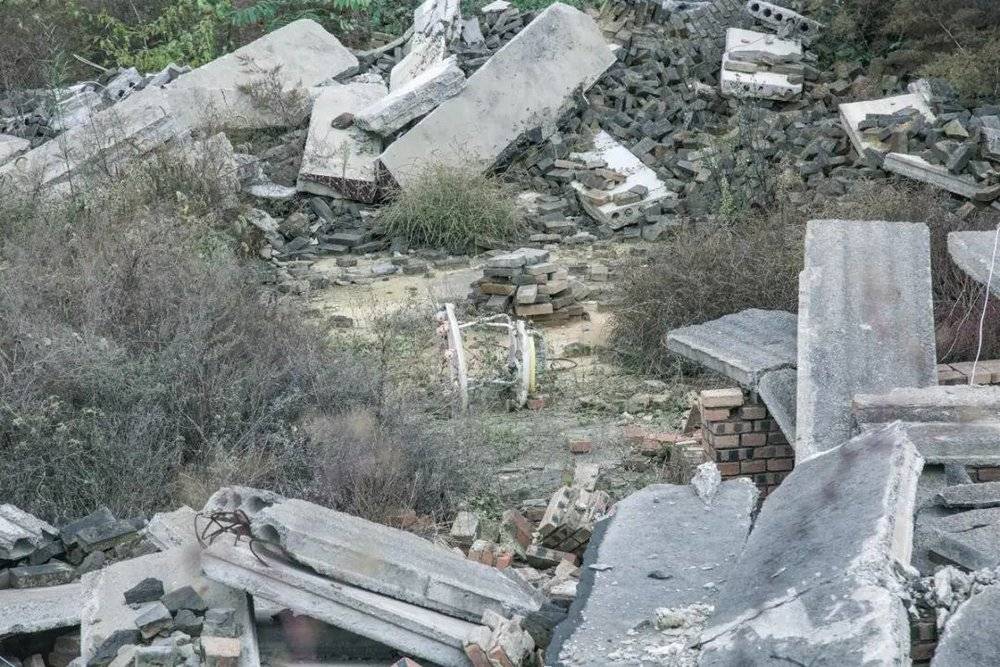 2019年10月,我开车沿着塌陷最严重的道路走过,沿途村庄尽是废墟,人为铲平的痕迹很新。这些房子裸露着红砖,堆砌在地面,一些门口的新瓷砖装饰都还锃光瓦亮。