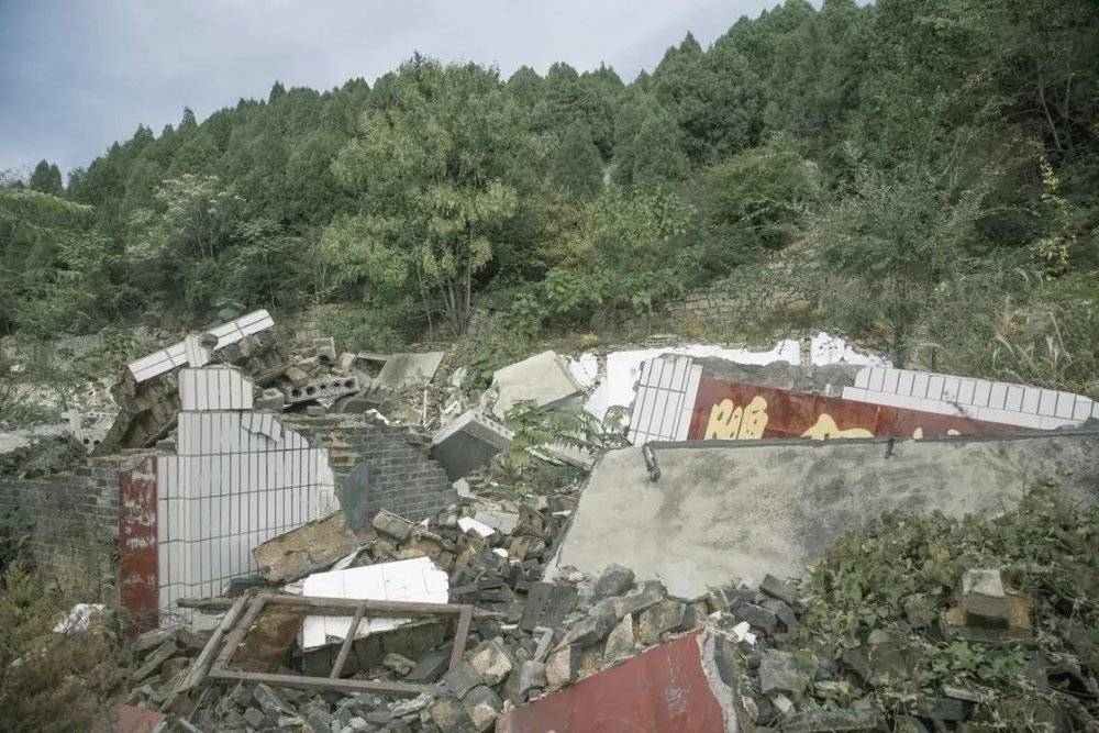 村里的房子和人呢?村子已经搬走了,为了防止村民偷偷回老房居住,大多数旧房已经被人为地推倒,遗留下几间庙宇。少数没有铲平的房子,你也可以看到一些裂缝。