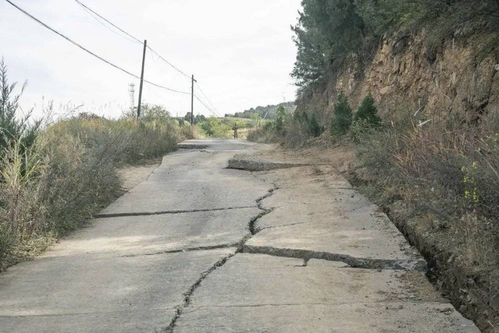 塌陷区山上,部分公路出现了裂缝。