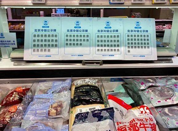 北京盒马牛肉冷柜上方放置有北京冷链二维码。(图片拍摄:赵晓娟)