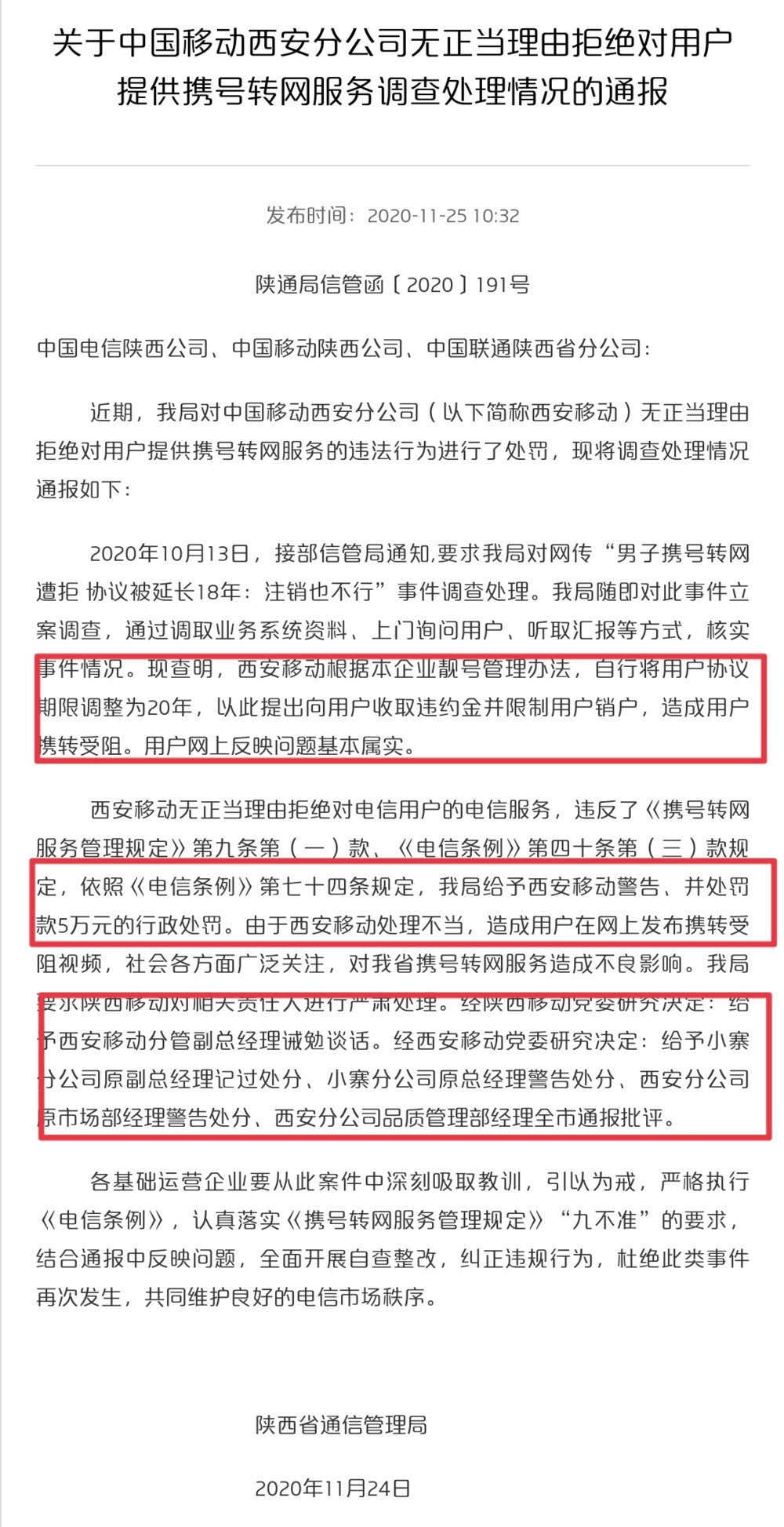 但从结果来看,就存在“铁路警察各管一段”的情况,从而错失了有效解决用户转网诉求的最佳时机。用户反复沟通无果之下通过网络曝光,并引发监管的关注,最终是通过行政处罚的方式解决。