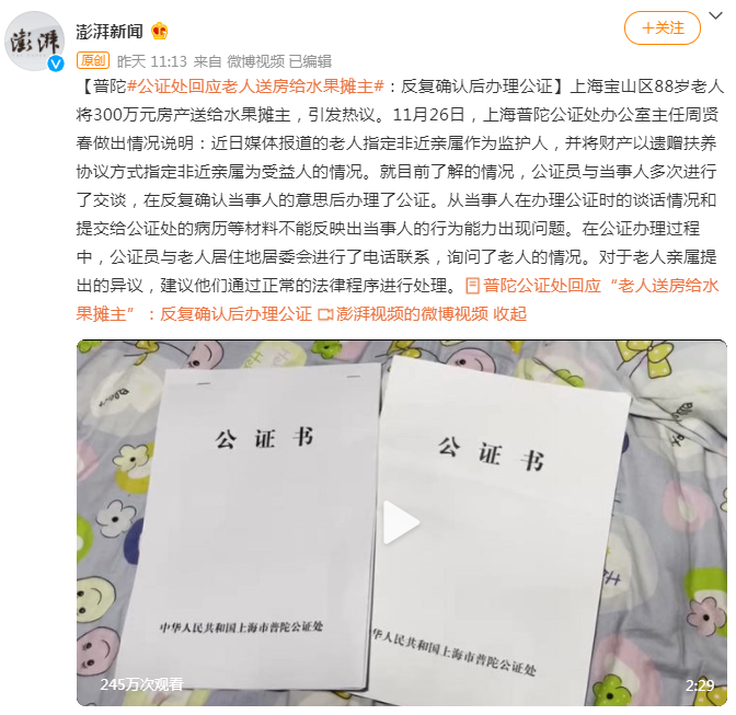 直到26日,当地公证处对外正式回应:反复确认后办理公证。
