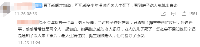 如新闻中所说,家属也早就知晓摊主照顾老人多年。但突然在老人赠房子之后跳出来,并把事情闹大,不禁让人开始往坏处想。