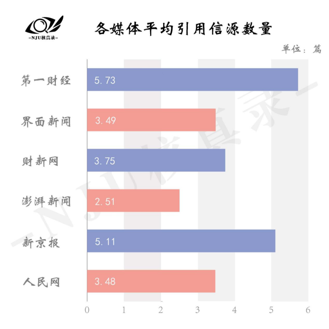 信源数量:第一财经最高5.73,澎湃新闻最低2.51