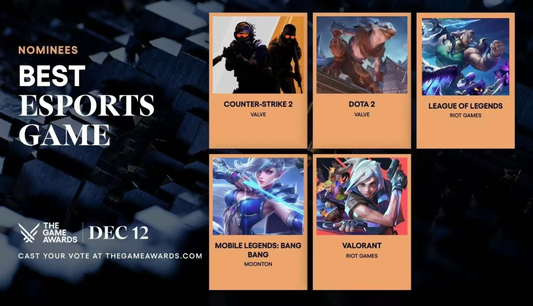 你看看和它争夺奖项的那几位,CS、刀塔2、LOL、无畏契约,就知道《决胜巅峰》大概有多火了。