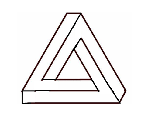 瑞典艺术家雷乌特斯韦德(Oscar Reutersvärd)专注于创作各种“不可能图形”(impossible figures),即能在画布上呈现但在真实三维世界中不可能存在的三维结构。早在1934年,他就创作出了“不可能的三角形”(impossible triangle),但在当时并不广为人知。