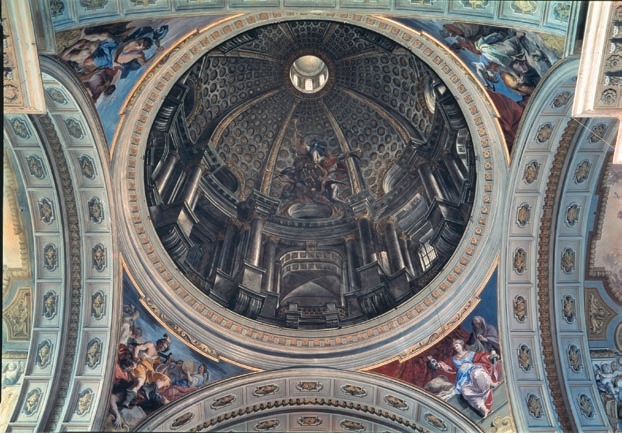 罗马圣依纳爵教堂(St.Ignatius of Loyola Church)的穹顶是巴洛克错觉艺术的经典范例。教堂的建筑师格拉西(Orazio Grassi)本打算造一个穹顶,却在教堂完工之前不幸撒手西去,建造穹顶的钱也被移作他用。30年后,也即1685年,宗教艺术家波佐(Andrea Pozzo)受邀在该教堂圣坛顶的天花板上画一个假穹顶。虽然波佐早就以透视艺术闻名,但是他绘制的假穹顶的效果依然令人难以相信,甚至直到今日,许多游客依然为这一穹顶只是一种错觉而惊叹不已!