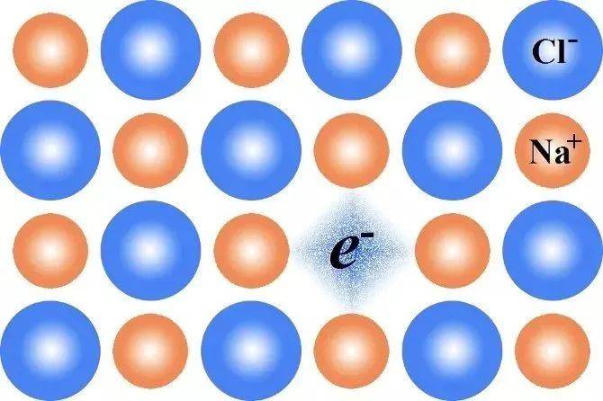 那个电子e-,就是食盐晶体(NaCl)中的色心|Wikipedia