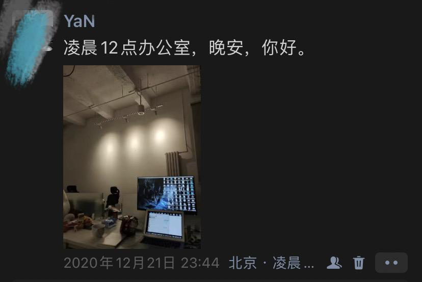 小 Yan 曾经说过,相比于下班回家,他反而喜欢在工位上的感觉。因为他“一回家就容易暴露了生活本身的问题和诸多不确定性”。