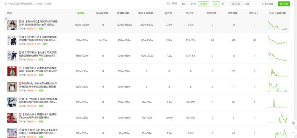 滑雪服同样成为近两年大量服装企业博弈的新战场,阿迪推出和冠军选手苏翊鸣共创的单板滑雪服;ZARA上线30款滑雪服,内衣品牌猫人推出多款滑雪速干衣装备。抖音平台和滑雪服相关的商品高达9999+,骆驼旗下某款滑雪服2024年双11大促期间GMV为5000万~7500万。2022年创牌、2023年入驻天猫的雪服品牌ISSE MIGGA,2024年年销售额增长400%。