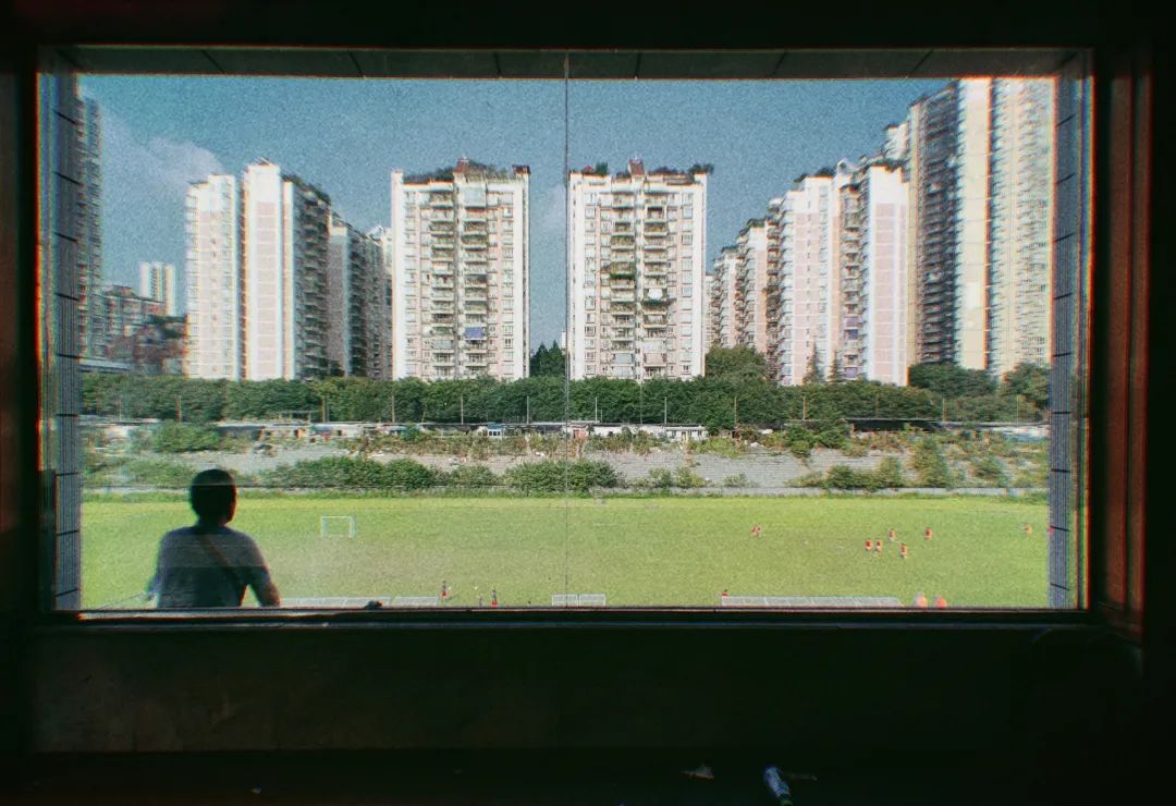 这片敞开的小天地之外被林立的高楼包裹起来,像是城市之中隐藏的乌托邦。洋河运动场处在观音桥北城天街与九街之间,位于巨大的商业体之间。重庆地区规模与人流排名第二的观音桥商圈总是灯红酒绿、车水马龙,而体育场的入口逐渐关闭,接触的人变得单纯,对外界的需求变得微弱。在剥离了既定的使用功能之后,隔绝令空间重新变得单纯与洁净。