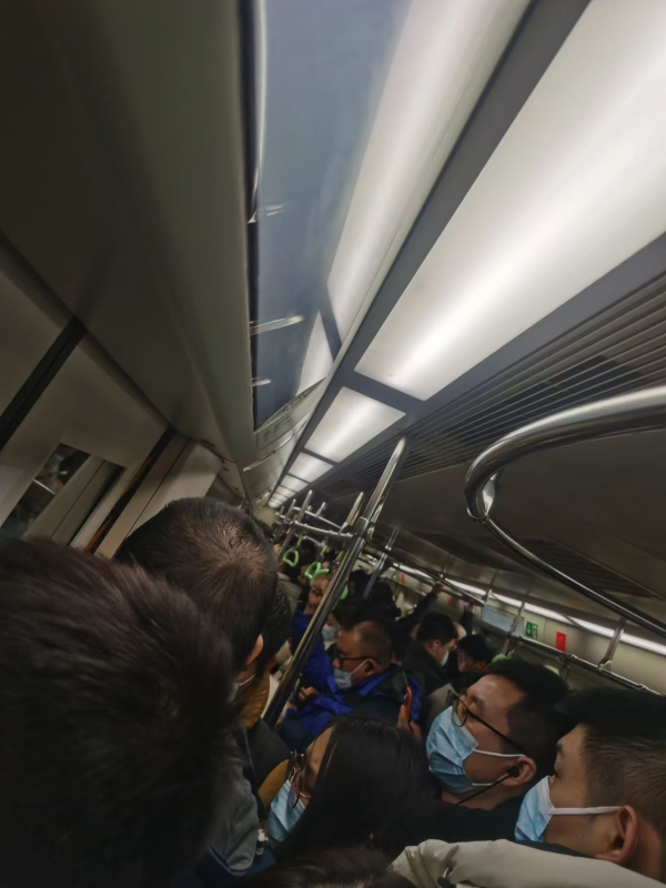 通勤高峰期间拥挤的房山线受访者供图