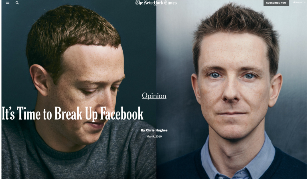 如果大家看过电影《社交网络》,就知道当年马克·扎克伯格创办Facebook的时候,有一位合伙人叫克里斯·休斯。他已经离职多年,却在2020年5月发布了一篇长文,标题是「It’s Time to Break Up Facebook」。