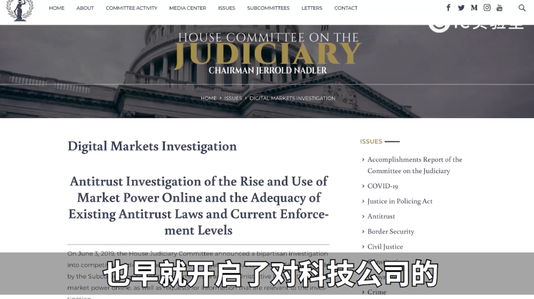 美国众议院司法委员会,也早就开启了对科技公司的反垄断调查,10月份发布了一份449页的报告,认为Facebook、苹果、亚马逊、谷歌等公司,都有利用致命收购打压对手、收取超高服务费,迫使小企业签订合约的垄断行为。