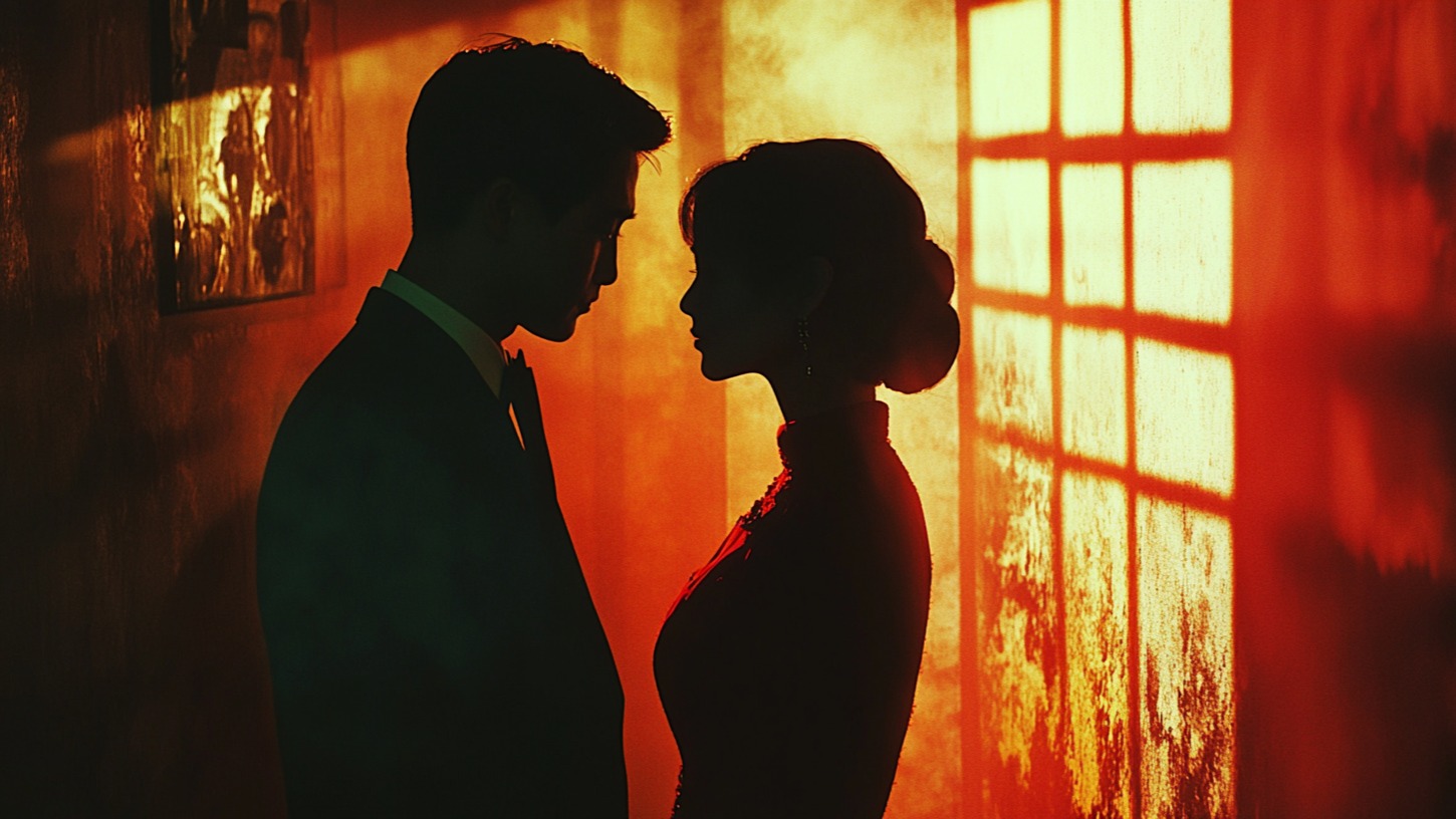 2000年的上海,恰逢《花样年华》上映,汪小姐和宝总在同一家影厅观影,碰巧拿错了对方的东西。隔着影院前后排的座位,他们从小心翼翼地侧身偷看,到最后身体碰撞在一起,相视一笑,认出彼此。此时,银幕上恰好对焦的是电影开头的字幕:“那是一种难堪的相对。她一直羞低着头,给他一个接近的机会。他没有勇气接近。她掉转身,走了。”