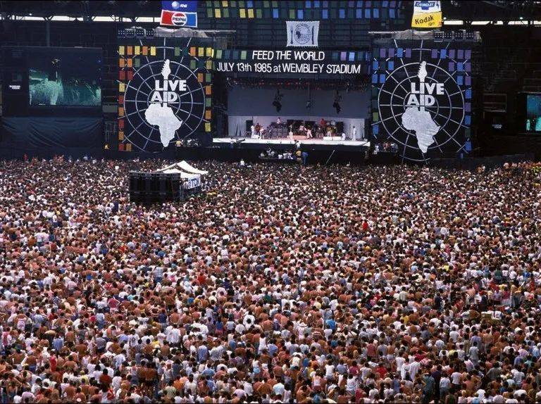 英国的皇后乐队、滚石乐队、保罗·麦卡特尼、大卫·鲍伊则在伦敦搞起了LiveAid,创造了140多个国家播出、15亿人观看的历史纪录。