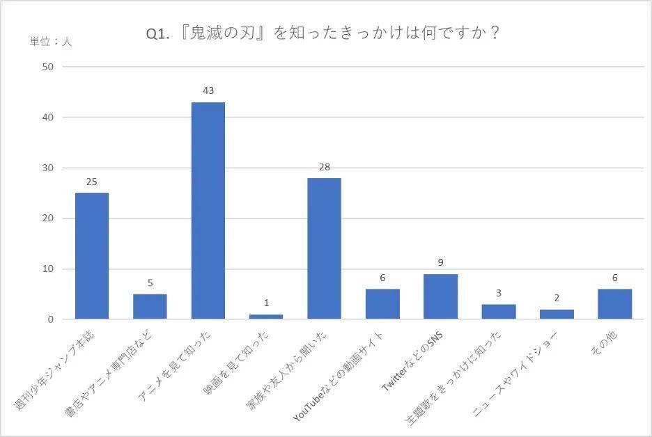 ● 调查“接触《鬼灭之刃》的契机是什么?”最多人回答的两项分别是“看了TV动画”和“从家人朋友那里听说”