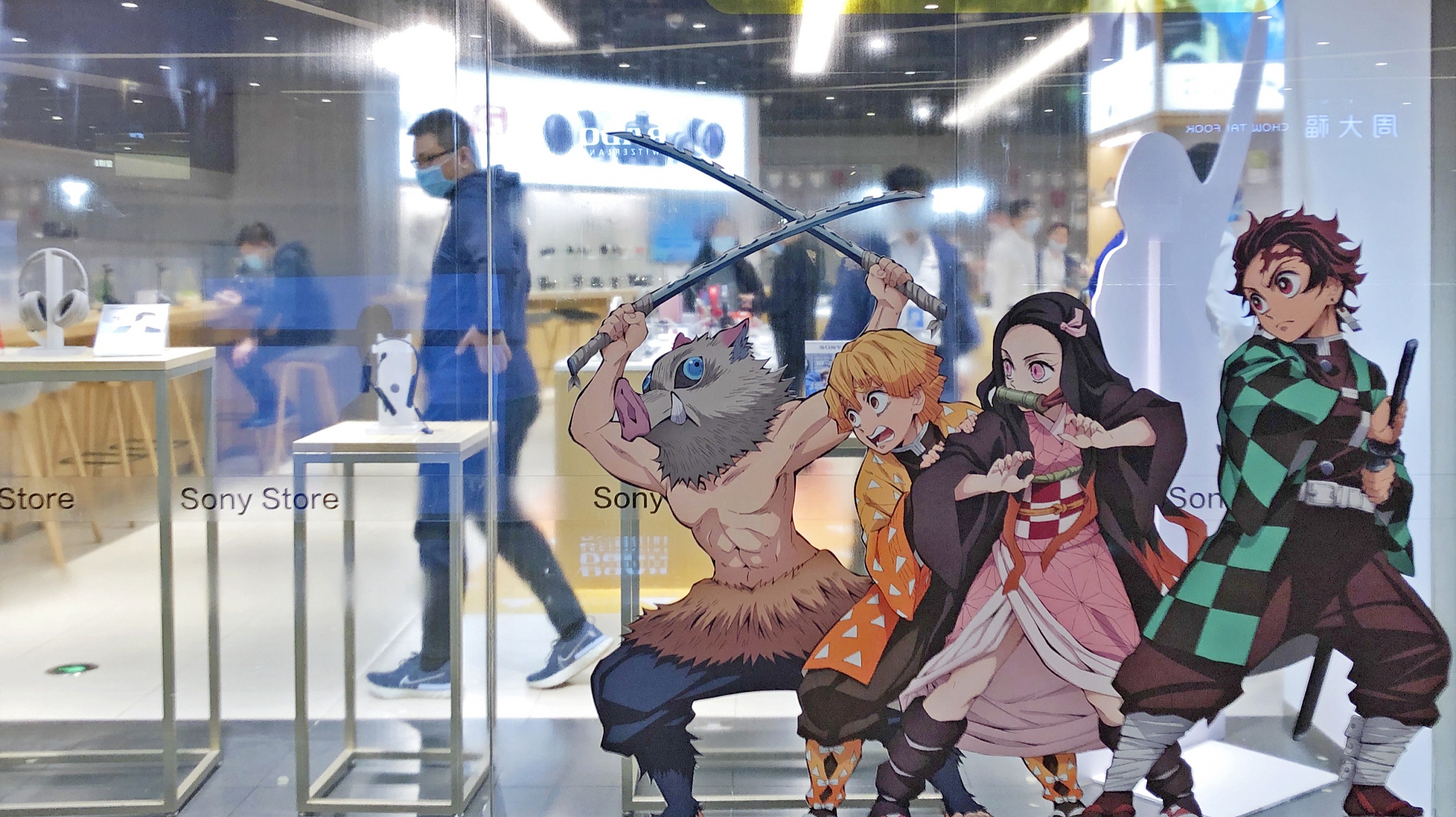 《鬼灭》在商业上的成功,比如易于植入到各类周边商品上,也取决于创作团队定下的独特画风。紫嫣形容它的画风“非常有平面设计的感觉”。每一个主角的衣服和配色都是特定的,这样的设计不仅非常容易让人记住,也便于生产周边商品。