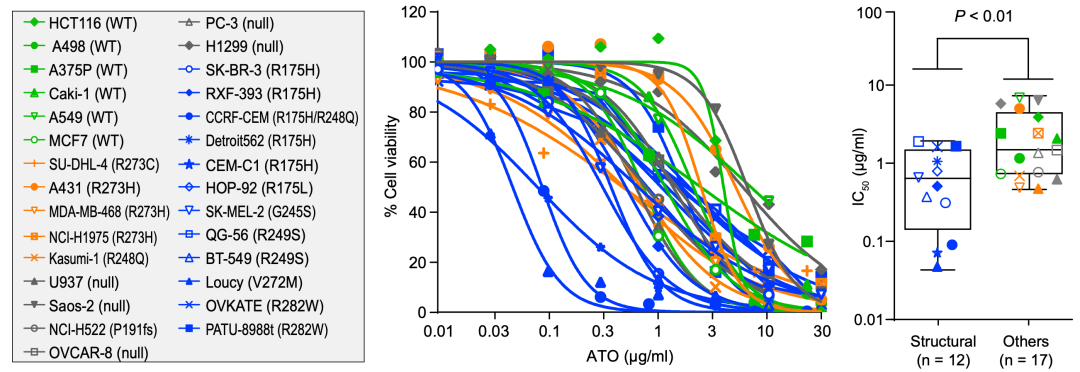 随后的细胞系研究也证实,砒霜对具有结构性突变p53的癌细胞系显示出明显更强的杀伤力。