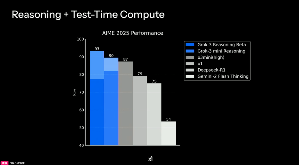 曾经Grok 2就已经达到过当时的SOTA水平。在经过多次迭代之后,模型的泛化能力有大幅提升。Grok 3在最新的AIME竞赛中则再次刷新了自己的纪录。