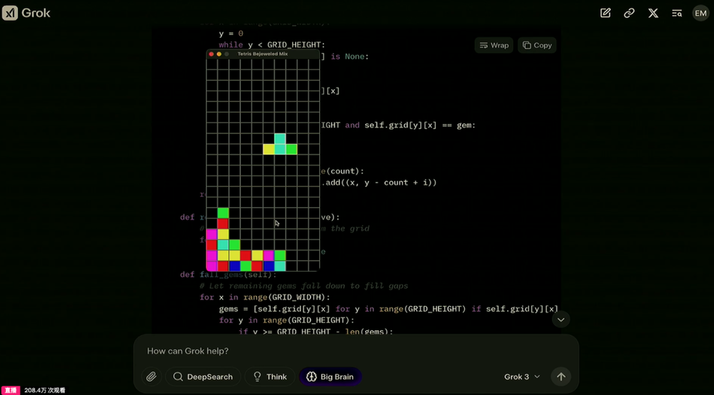 另一个则是试图让Grok将《俄罗斯方块》和《宝石迷阵》这两款游戏结合起来,创造出一个新的游戏。