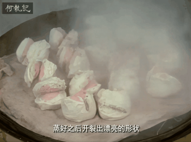 两色馒头像变戏法一样在蒸笼里开花: