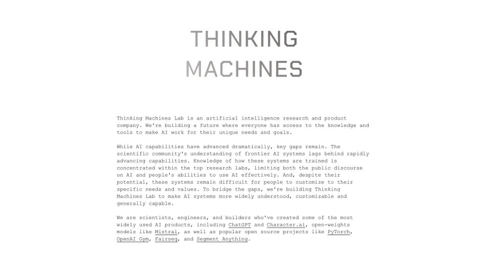 我与一支杰出的科学家、工程师和建设者团队一起创立了“思维机器实验室”(Thinking Machines Lab)。我们正在做三件事: