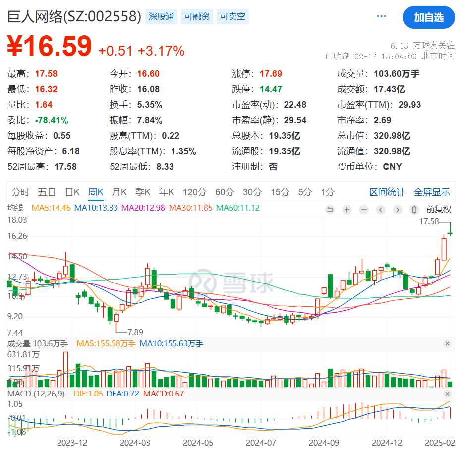 其次是股市中的AI概念溢价效应。自从《太空杀》引进Kimi大模型后,巨人网络就被热心的股民贴上了“Kimi AI概念股”的标签,在Kimi火热时期可没少受益。最近和阿里的千问合作,再一次成为了“Qwen概念股”。这种给上市公司“贴标签”的操作,在资本市场上屡试不爽。