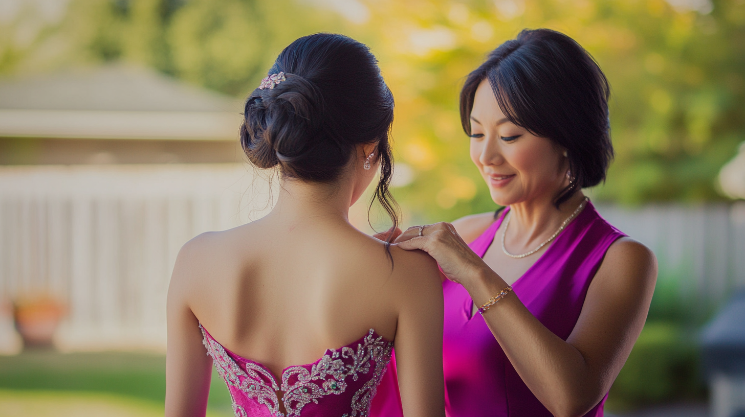 当女儿们在台上大放异彩的时候,也是妈妈们最繁忙的时刻。