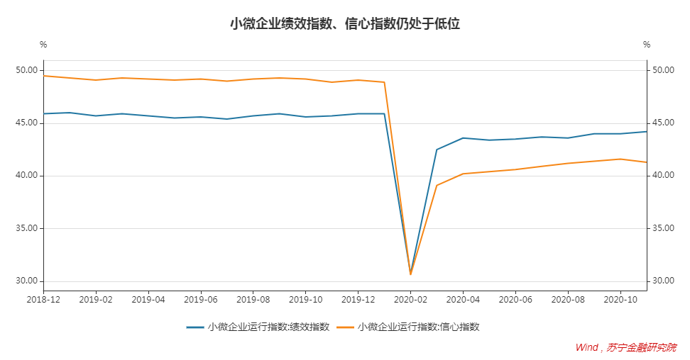 据经济日报—邮储银行联合发布的小微企业指数,当前小微企业绩效指数、信心指数均处于低位。作为吸纳就业的主力军,小微企业主较低的信心,一定程度上也预示着2021年稳就业的压力。