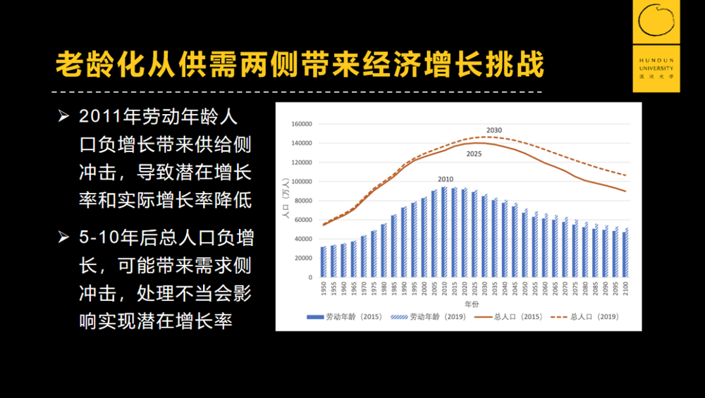老龄化作为一个不可逆转的过程,会从供给侧和需求侧对经济增长造成两方面的冲击和挑战。